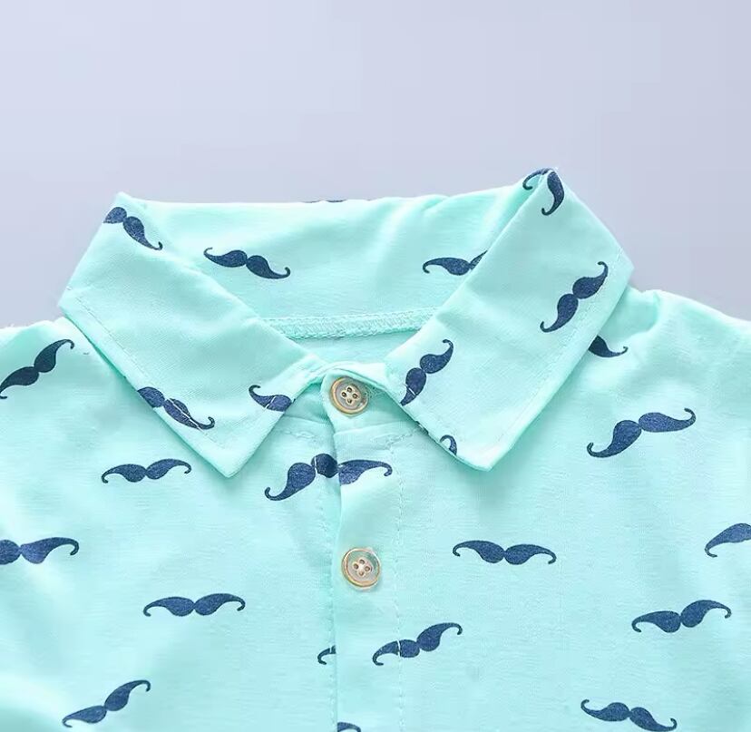 #0050 髭プリント綿シャツ+パンツ