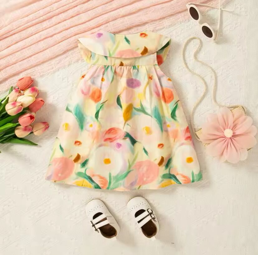 #0059 花柄ワンピース+お花バッグ付き 2点セット